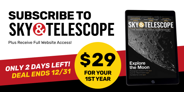 | A new year of celestial sights is almost here — and with it, your final chance to start 2026 with a digital subscription to Sky & Telescope at our holiday rate. Pay just $29 for your first year — limited-time offer ends December 31st!